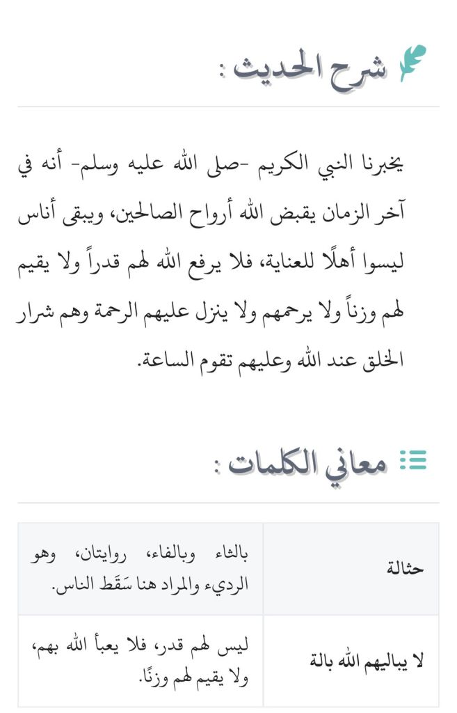 🍃 قال رسول الله ﷺ : ” يذهبُ الصالحون الأول فالأول ، وتبقى حُثالة كحثالة الشعير أو التمر لا يباليهم اللهُ بالة”