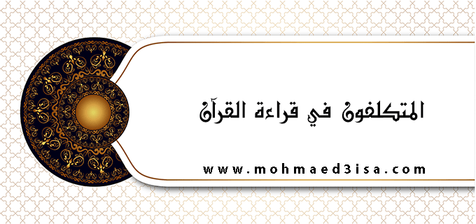 يعمد بعض القراء إلى تكلف في إخراج الحروف والمدود، فتجده مصروفا عن تدبر كلام رب العالمين إلى تقليب نغمة الصوت، وتكلف الأداء، والمبالغة في تجويد القراءة. ولم يكن على ذلك فعل النبي صلى الله عليه وسلم، ولا أمره، ولا السلف الصالح من بعده، بل كانت قراءتهم وسطا لا غلو فيها ولا تفريط، وكانوا يسألون الله عند آيات الوعد، ويفرقون من آيات الوعيد، ولهم مع قصصه عبر، وفي آياته نظر. {كتاب أنزلناه إليك مبارك ليدبروا آياته وليتذكر أولوا الألباب}(ص: 29).