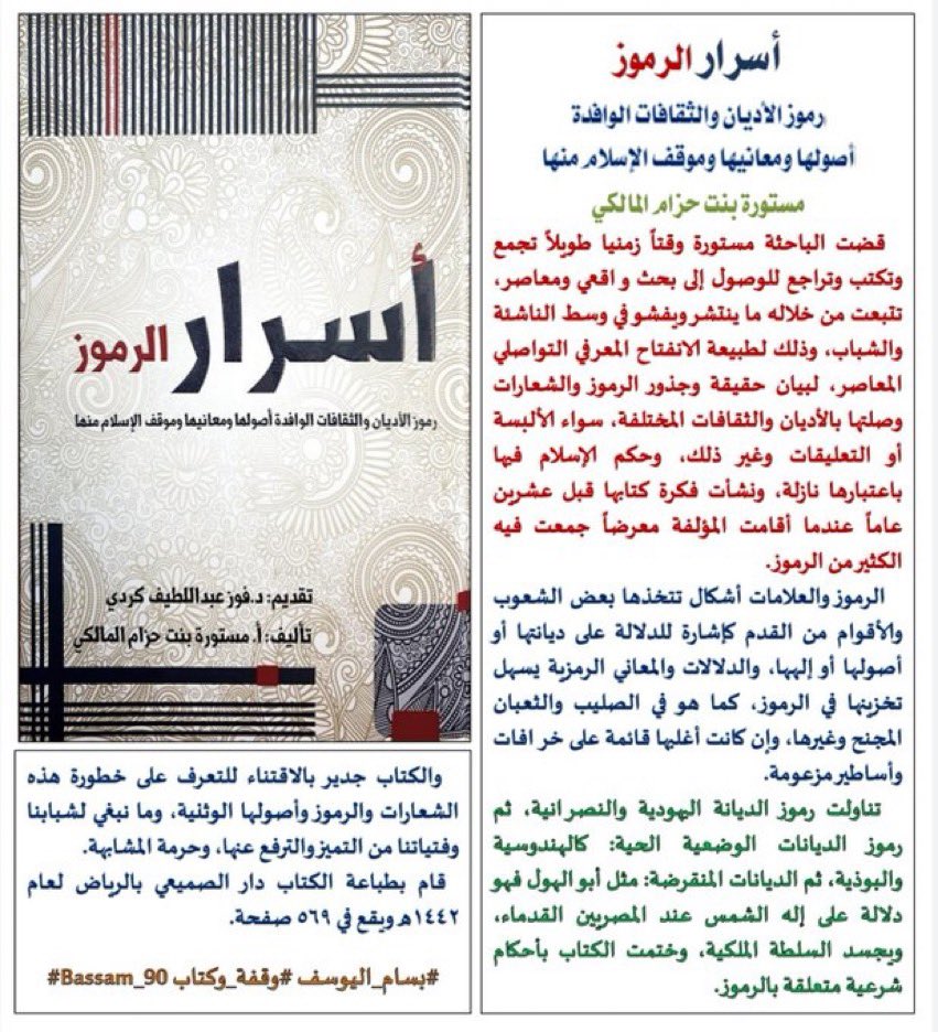 كتاب “أسرار الرموز: رموز الأديان والثقافات الوافدة أصولها ومعانيها وموقف الإسلام منها” من تأليف الأستاذة مستورة بنت حزام المالكي،